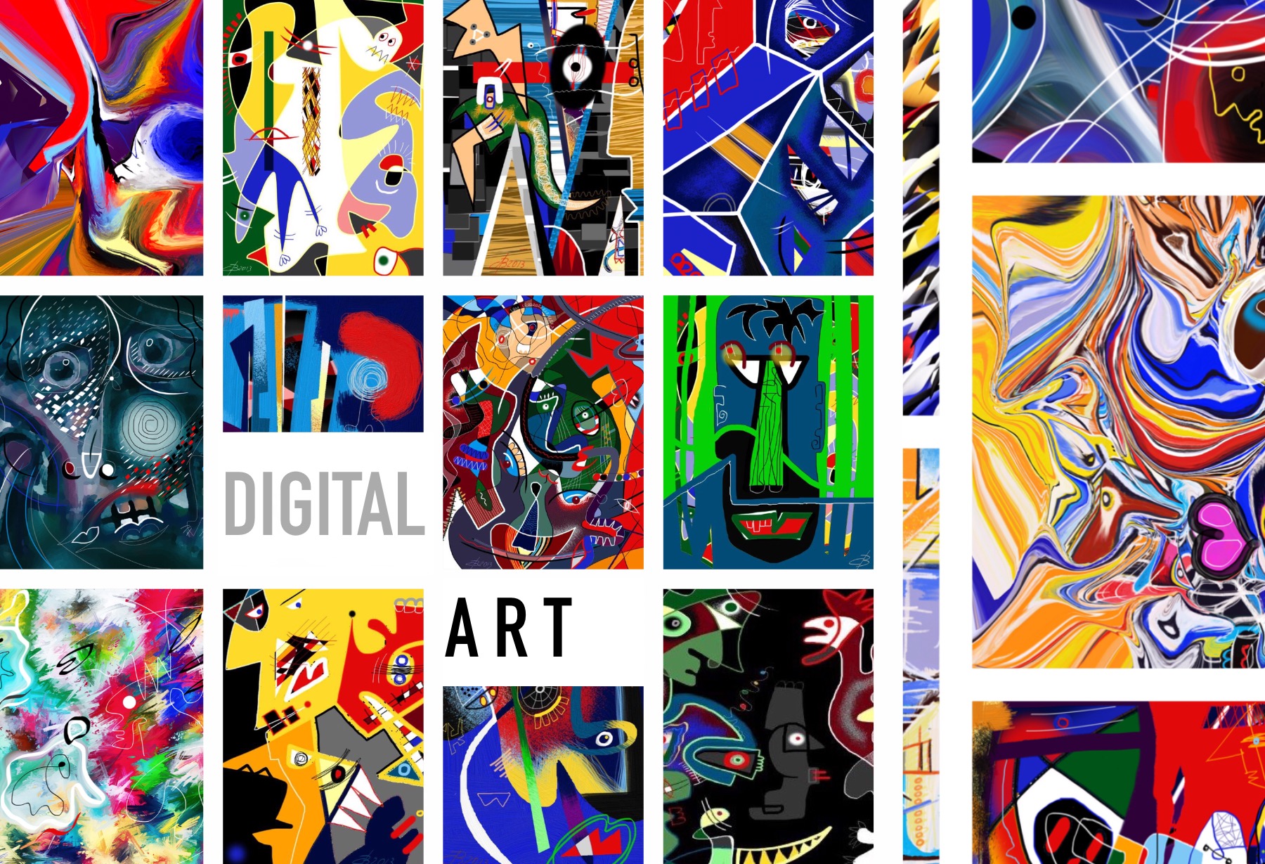 esempiOpere di "digital painting" realizzate con iPad3 - iPad Pro, riproducibili su diversi tipi di supporti (alluminio, vetro, pelle ecc.).